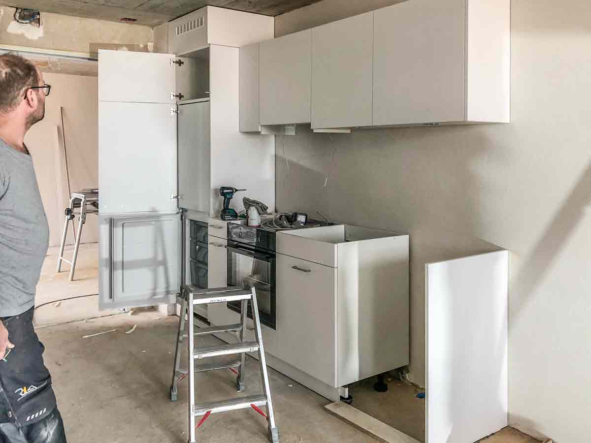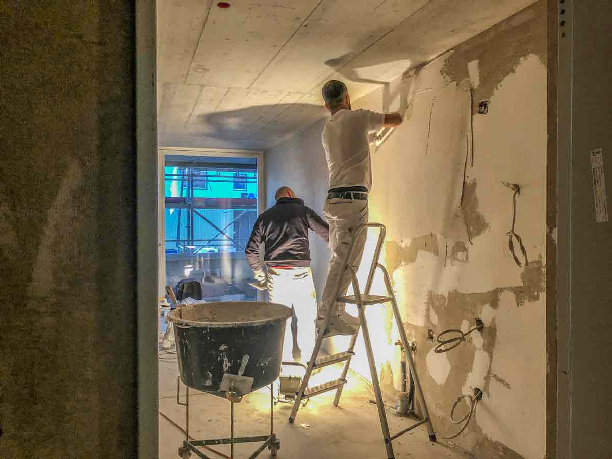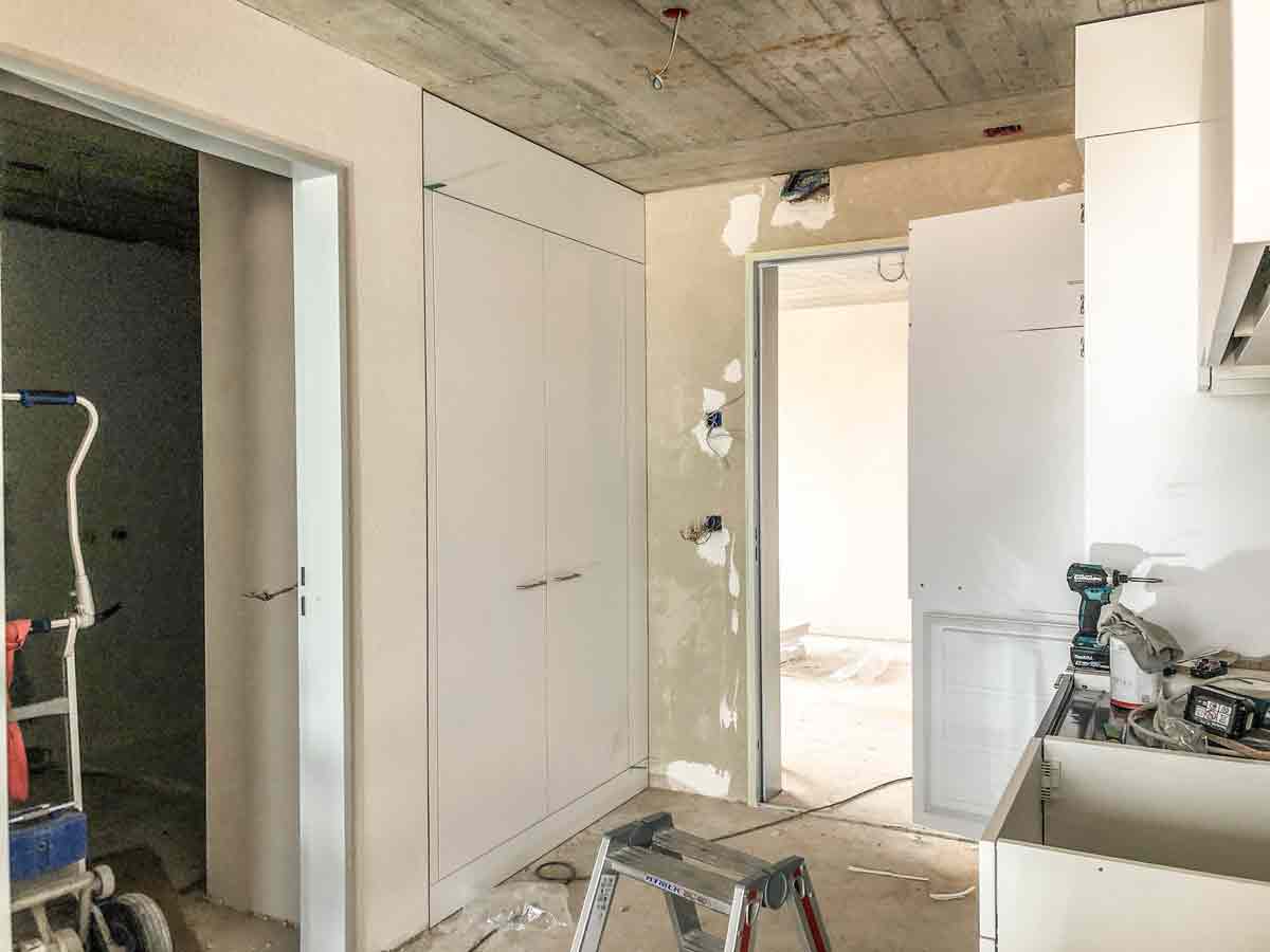 Der Innenausbau im «Haus für Menschen» schreitet tüchtig voran. Der Blick in ein Wohnstudio zeigt, wie dieses zukünftig aussehen wird.