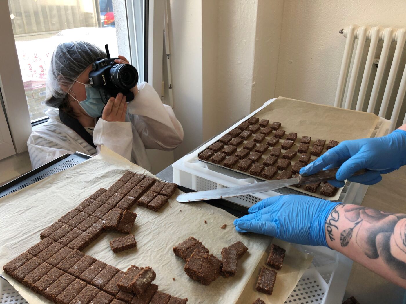 Paul Imhof, Journalist und Buchautor sowie Mitglied des Vorstands des Vereins Kulinarisches Erbe der Schweiz, hat kürzlich zusammen mit Fotografin Valentina Verdesca, Mitarbeitenden sowie Klientinnen und Klienten bei der Herstellung des Leckerlins über die Schultern geschaut. Während des Besuchs ist Imhof eingehend über den geschichtlichen Hintergrund, die Entstehung, die Zutaten und den Produktionsablauf des Leckerlins informiert worden.