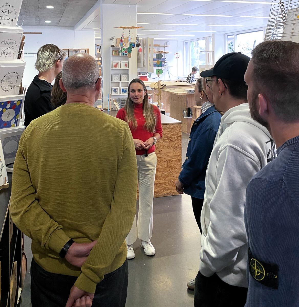 Am Vormittag besucht die Gruppe die IG Arbeit Luzern – eine Institution, die sich für die Integration von Menschen mit psychischen Beeinträchtigungen, Sozialhilfebeziehenden und Langzeiterwerbslosen engagiert. Nach einer Einführung in das vielfältige Angebot und den ganzheitlichen Ansatz der IG Arbeit folgt eine Führung durch verschiedene Arbeitsbereiche wie die Textilwerkstatt, Schreinerei, Verpackerei und Administration.