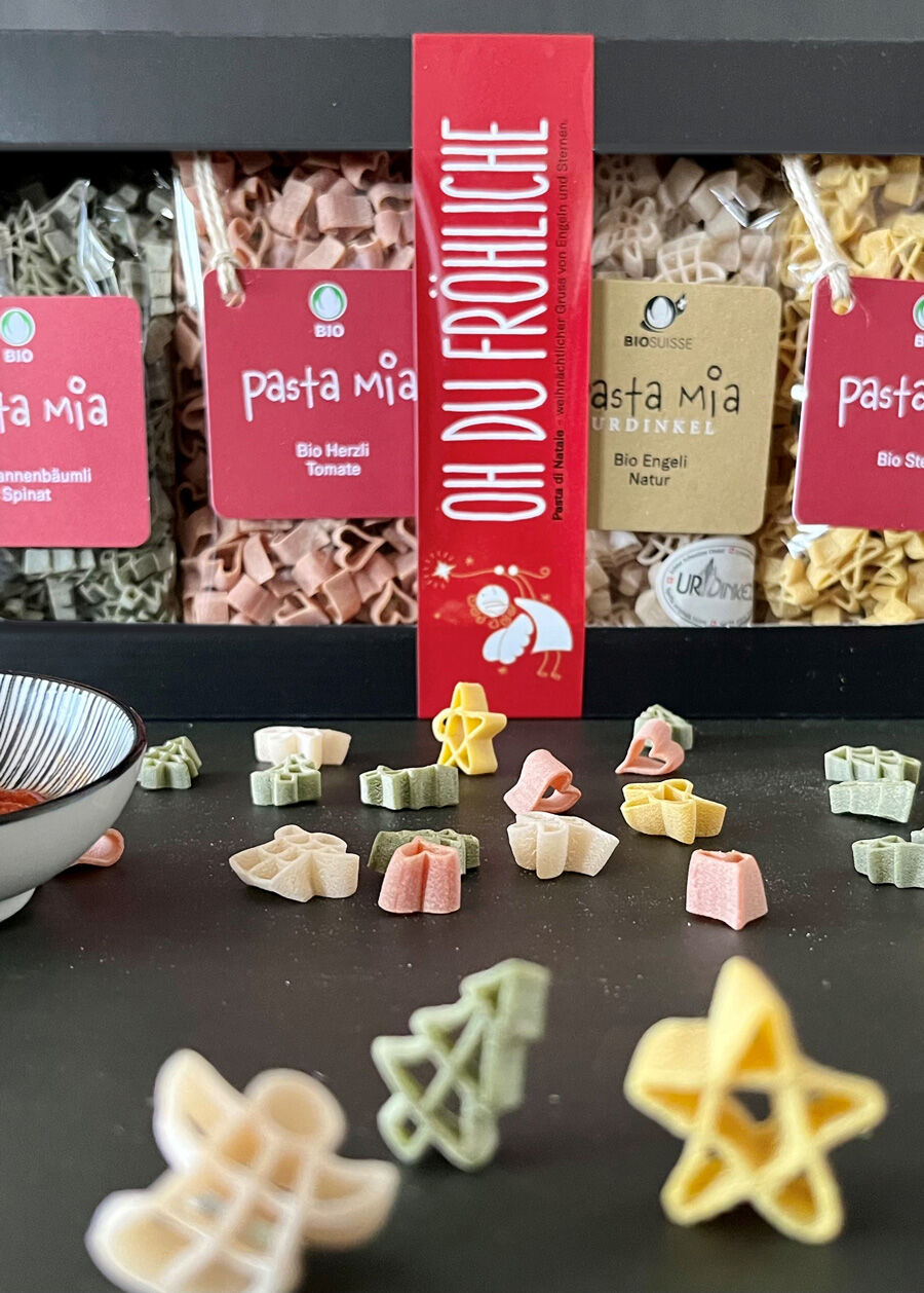 Entdecke unsere Pastavielfalt, auch assortiert in einer weihnachtlichen Geschenkbox. Erhältlich online oder im LADE15 an der Bleichemattstrasse 15 in Aarau.