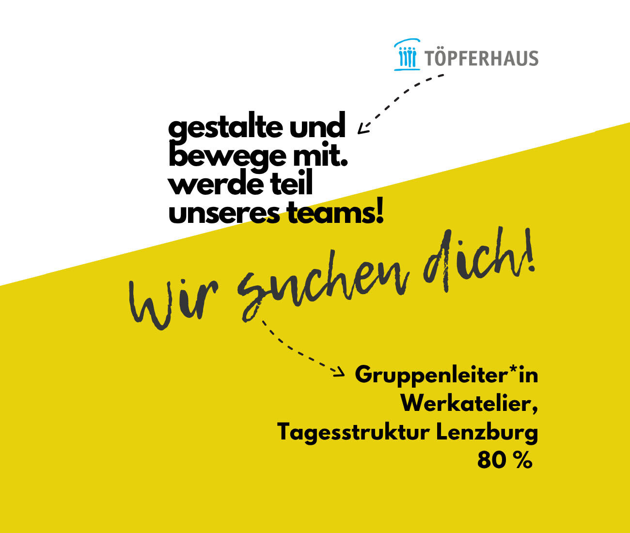 Für den Aufbau des Werkateliers Lenzburg und zur Unterstützung der Tagesstätte suchen wir dich als engagierte und motivierte Persönlichkeit.