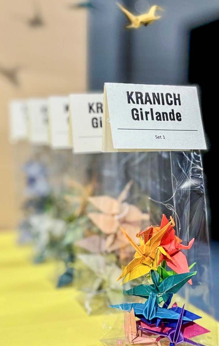 Jeder Kranich von Hand gefaltet, jede Girlande ein kleines Stück Bewegung.
