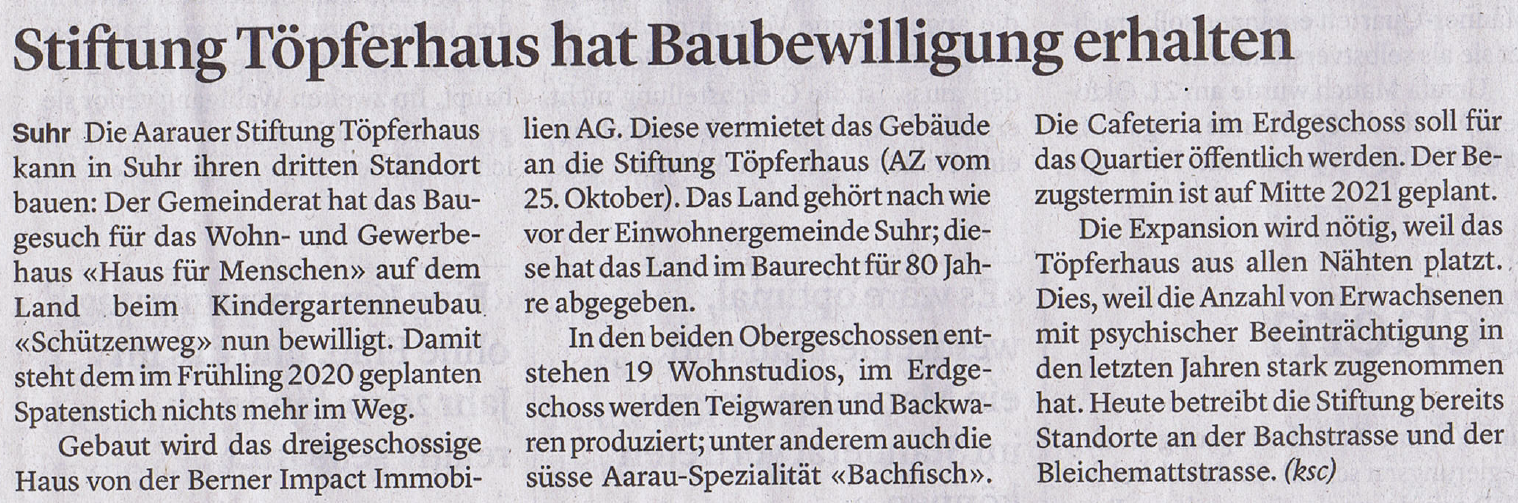 - Aargauer Zeitung, Töpferhaus Suhr, 21.12.2020