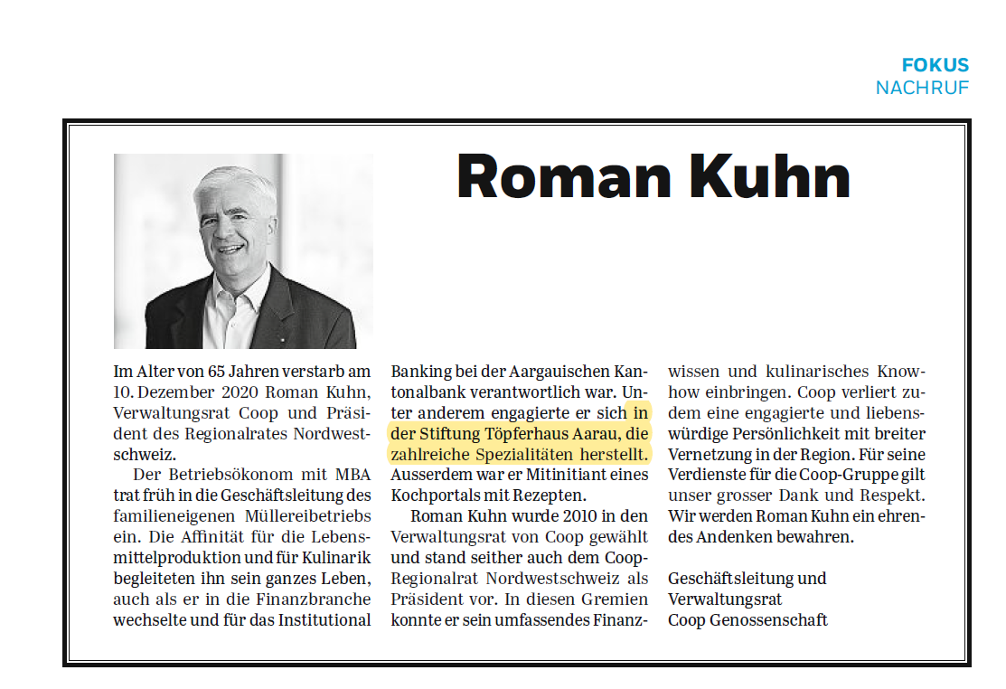 - Coop Zeitung Nr. 52 2020, Nachruf Roman Kuhn